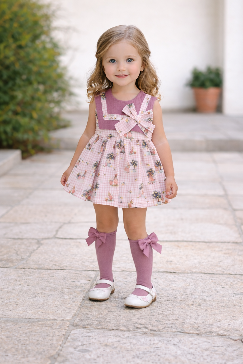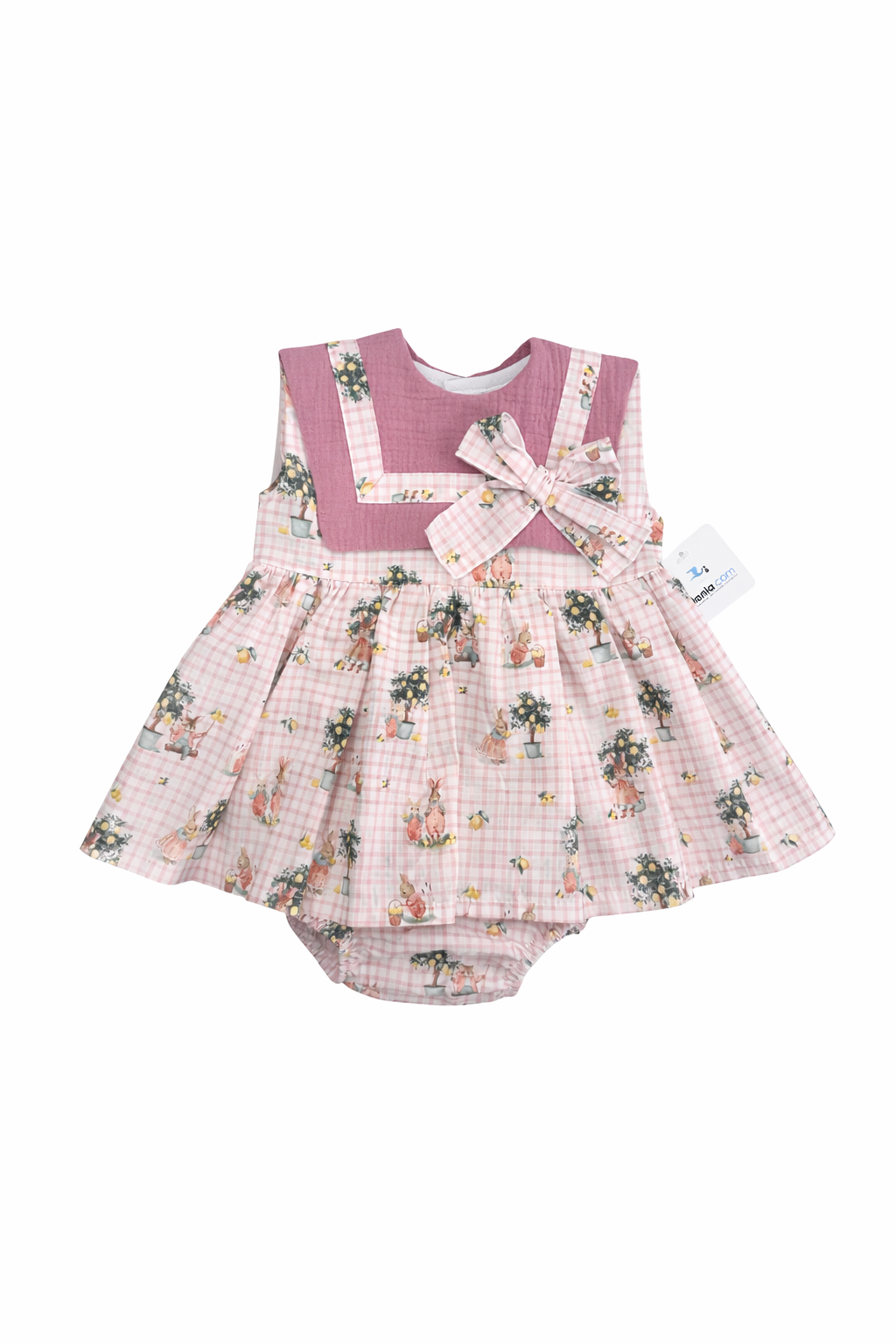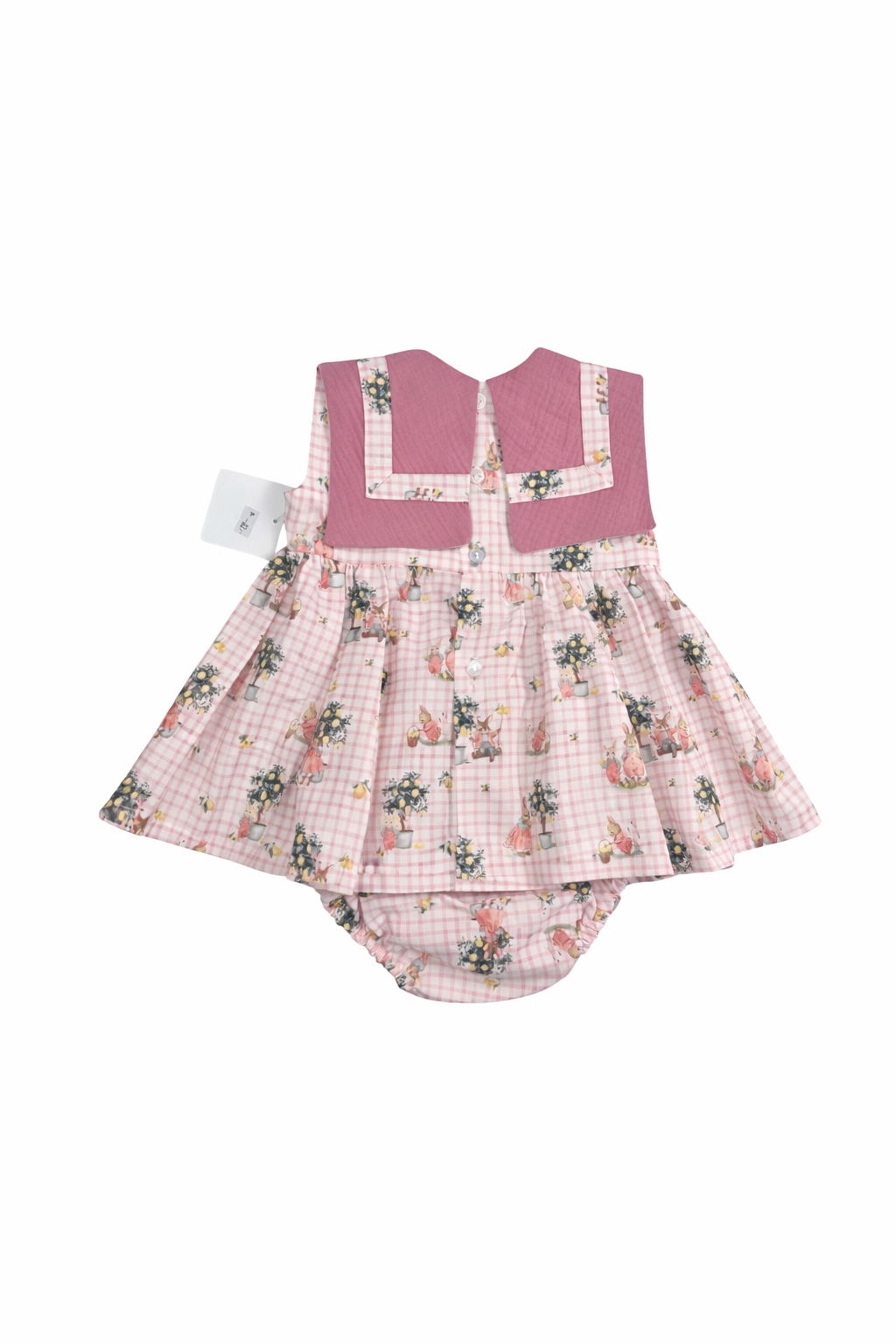 Delicado jesusito confeccionado a mano en suave tela de algodón, La falda con vuelo proporciona movimiento y comodidad, mientras que el cubrepañal a juego completa el conjunto, logrando un look armonioso y práctico para el día a día o para ocasiones especiales.