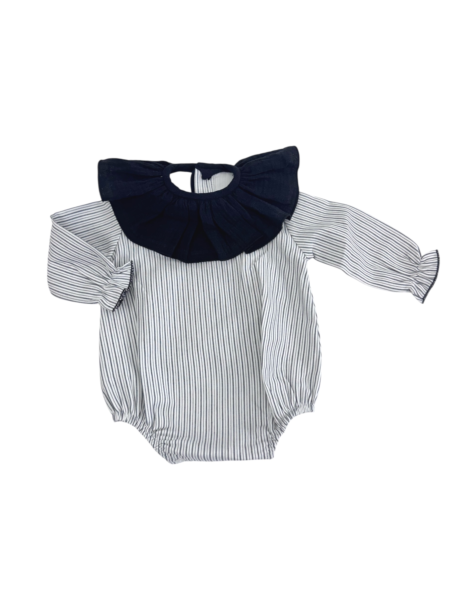 Pelele  con forro interior y cuello babero, el tallaje es normal, pero se recomienda una talla más de la edad. Por ejemplo, para 12 meses una 18.