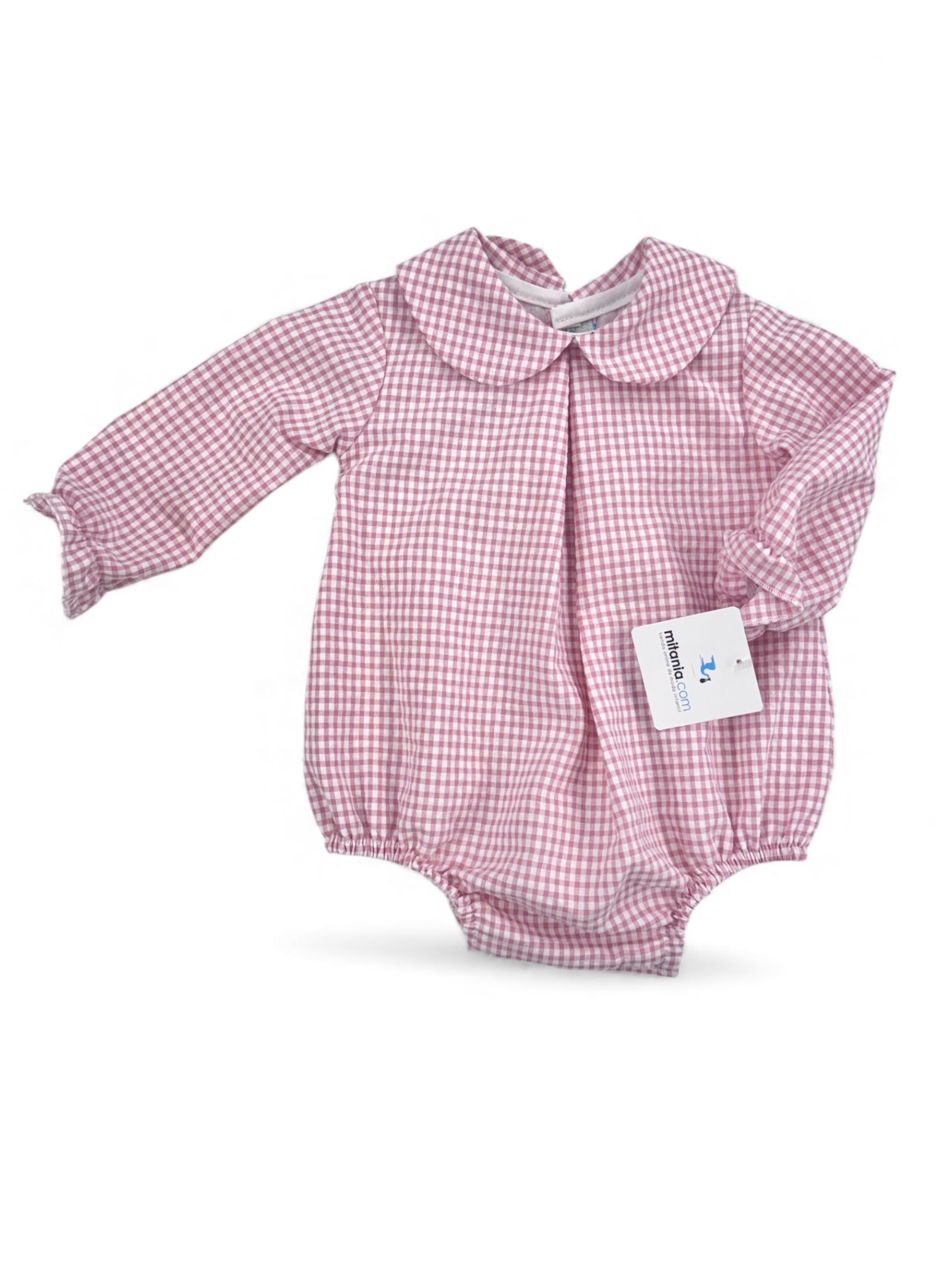 Pelele de bebé hecho a mano con forro interior – Cuadro vichy rosa